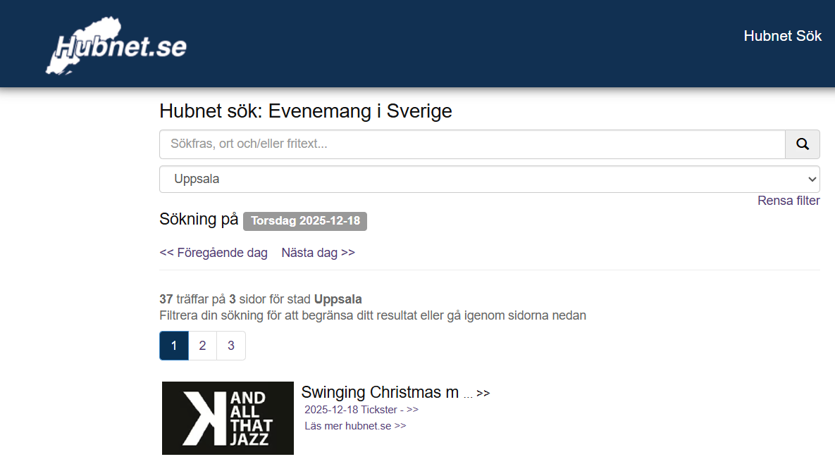 Hubnet.se gör det möjligt att hitta evenemang i städer i Sverige